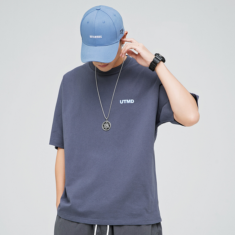 dpxworkshop旗舰店夏季新款欧美复古字母印花短袖T恤男嘻哈圆领宽松休闲五分袖体恤
